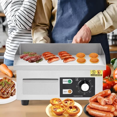 Perfect for countless cooking tasks including pancakes, bacon, omelets, pizzas, steaks, and hamburgers. Suitable for restaurants, food trucks, snack bars, food courts, and home kitchens. The spacious 14-inch surface accommodates multiple items simultaneously, making it ideal for busy cooking environments and family meals.?? Technical Specifications: