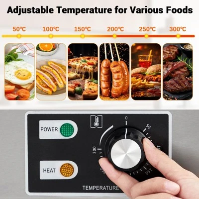 - Adjustable Temperature Control: Easily customize your cooking with dual constant temperature controls, allowing for precise adjustments between 122°F – 572°F (50°C – 300°C). The dense heating coils ensure even and thorough cooking, making it ideal for professional-grade results