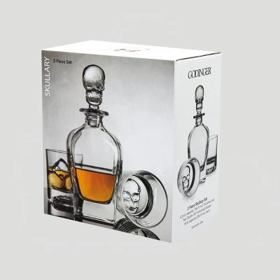 Never let your home bar go bone dry. This Godinger unique skull decanter and glass set adds a striking accent to any home bar. Made with traditional hand-cut glassware, each piece is crafted for brilliant clarity and weighty balance.