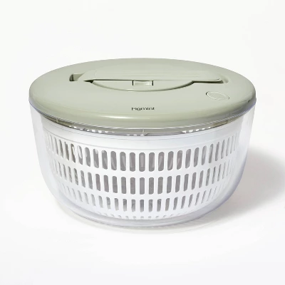 Rinse and dry leafy greens, lettuce, herbs and fruit with this 5-Quart Salad Spinner from Figmint™. This BPA-free salad spinner adds much-needed convenience to your meal prep and features a lock to hold the handle down when not in use. Simply press the handle down to spin. You can even serve salad from the bowl of this salad spinner, and it can be hand washed for easy upkeep.