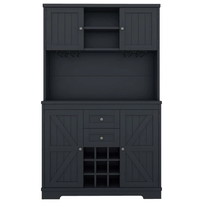 - 【Muti-functional Coffee Bar】This buffet cabinet with drawers also features 4 wine glasses and 9grid bottle holders to store your cherished wines. The open storage shelves allow for the display of beautiful wine glasses, making it the ideal kitchen cabinet for the farmhouse collector.