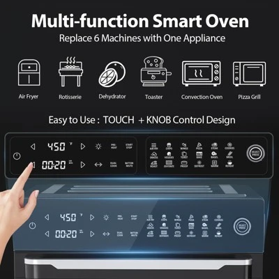 - 【Ultimate 6-in-1 Appliance】Save counter space and money! This versatile combo works as an Air Fryer, Toaster Oven, Rotisserie, Dehydrator, Pizza Oven, and Convection Oven, all in one powerful 1800W unit.