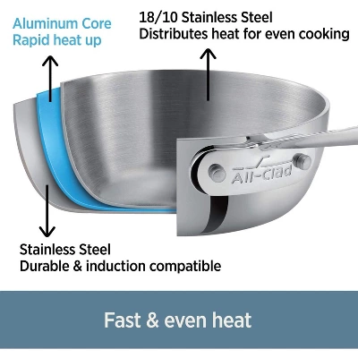 PROFESSIONAL PERFORMANCE WITH EVERYDAY CONVENIENCE, D3 Nonstick tri-ply is fully bonded to the rim for fast & even heat. The high-quality PTFE nonstick brings a long-lasting and easy release to cook with less fat.