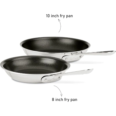 Set includes: 8 & 10-inch nonstick fry pans, both featuring a flat base and flared, mid-sized sides that allow for easy flipping and tossing – kitchen staples for even cook