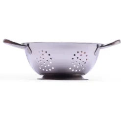 Upgrade your kitchen with the Amco 3-piece stainless steel colander set, designed to handle all your rinsing, straining, and draining needs. Featuring 1.5, 3, and 5-quart capacities, this versatile set is ideal for everything from washing delicate berries to draining large portions of pasta and vegetables. Made from professional grade stainless steel, these colanders are built to last, resisting rust and maintaining their durability even with daily use. Their perforated design ensures rapid water drainage, preventing pooling and making meal prep more efficient. The easy-to-grip handles provide a secure hold, allowing for seamless food transfer without spills or mess. Stackable for compact storage, this set easily fits into any kitchen space without clutter. Whether you’re a home cook or a professional chef, these colanders bring convenience and reliability to your kitchen. Plus, they’re dishwasher safe, making cleanup quick and hassle-free. Designed for versatility, the Amco stainless steel colander set is perfect for draining pasta, washing fresh produce, or preparing crisp salads. A must-have addition to any kitchen, this set delivers both function and durability in a sleek, space-saving design.