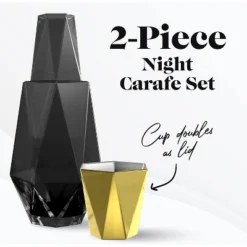 - 2-Piece Bedside Carafe Set – The American Atelier Geometric Water Carafe with Glass will make a great addition to your bedside table. Expertly crafted with glass, this set includes a carafe and a tumbler that serves as a lid to keep water clean for drinking and quenching thirst in the middle of the night.