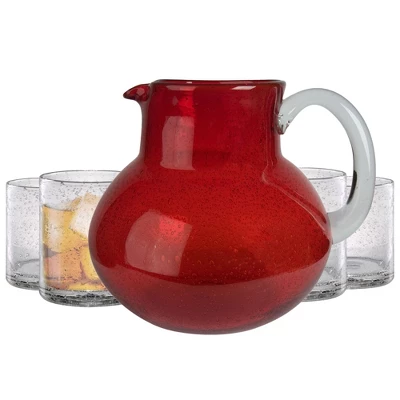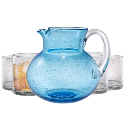 Elevate your dining experience with the Artland Iris Hand Blown 90oz Pitcher and 14oz Double Old Fashion Glass Set. This striking glassware set marries artistry with functionality, featuring a unique hand-blown bubble shape that adds character to any table. The 90oz pitcher offers ample capacity for serving a variety of beverages, from water to iced tea, making it a versatile addition to your home.Accompanying the pitcher are four 14oz double old-fashioned glasses, designed for enjoying cocktails, juice, or water with style. Each piece in the set is crafted from lead-free glass, ensuring safe use without compromising on durability or design. The Artland Iris set is ideal for those who appreciate thoughtful details and quality craftsmanship in their everyday dining.Whether hosting a dinner party, enjoying a casual meal, or preparing for a special occasion, this glassware set is sure to impress. Its design complements any table setting, from contemporary to classic, making it an essential piece for both everyday dining and entertaining. Add the Artland Iris set to your collection and enjoy a blend of beauty and practicality in your drinkware.