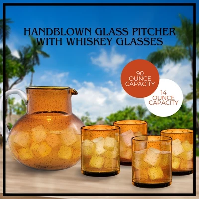 - Stylish 14oz DOF Glasses: The set includes four 14oz double old-fashioned glasses, perfect for cocktails, juice, or water. These glasses complement the pitcher and offer a cohesive look to your drinkware collection.