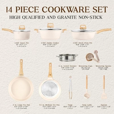 - EASY TO CLEAN: We know that cooking sometimes leaves a mountain of dishes and pots to wash and makes this task time-consuming. The stain-resistant surfaces ensure your cookware is easy and quick to maintain. While our pieces are durable enough for the dishwasher, hand washing is recommended to ensure the set’s longevity.
