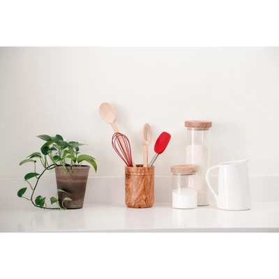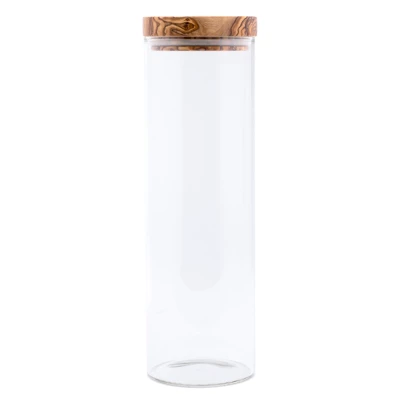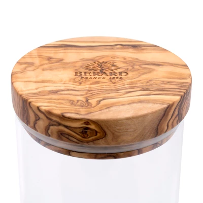 The Berard Glass Storage Jar with Olivewood Lid, 50-Ounce, combines timeless style with practical storage. The clear, durable glass body makes it easy to see contents, while the handcrafted olivewood lid adds a touch of natural elegance. The jar is perfect for storing pantry staples such as pasta, grains, or dried fruits, keeping them fresh with the lid’s airtight seal. Each olivewood lid features a unique grain, making every jar one-of-a-kind. Whether used on your kitchen counter or in your pantry, this jar adds beauty and functionality to your storage solutions.