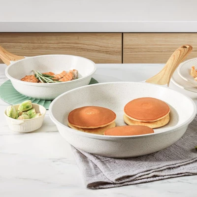 The BRINJOY 10-Piece Ceramic Nonstick Cookware Set revolutionizes healthy cooking with its completely non-toxic ceramic construction, free from PFOA, PTFE, PFAS, lead, and cadmium. This comprehensive set includes a 9.5-inch fry pan, 11-inch/4.3qt saut¨¦ pan with lid, 2.6qt saucepan with lid, 4.7qt casserole with lid, two silicone utensils, and four pot protectors – perfectly designed for small families seeking both safety and convenience. The superior ceramic nonstick surface ensures effortless food release without toxic fumes, even when overheated, while requiring minimal oil for healthier cooking. Engineered for exceptional performance, the stainless steel base provides full induction compatibility and durability, while cast aluminum construction enables rapid, even heating across all stovetops. The tempered glass lids offer convenient cooking monitoring and splash prevention, and the woodgrain Bakelite handles remain cool during use for comfortable, safe handling. Oven-safe up to 550¡ãF (with handle removal), this elegant beige white set combines health-conscious innovation with professional cooking capabilities for discerning home chefs. Product Selling Points 100% Non-Toxic Ceramic Construction Completely free from PFOA, PTFE, PFAS, lead, and cadmium, ensuring absolute cooking safety without toxic fumes or coating flaking. Superior Nonstick Performance Ultra-smooth ceramic surface provides exceptional food release without sticking, allowing healthy low-oil cooking and easy cleaning. Full Induction Compatibility Stainless steel base works on all stovetops including induction, with cast aluminum ensuring quick, even heating and consistent results. Complete Family Kitchen Solution 10-piece set includes fry pan, saut¨¦ pan, saucepan, casserole with lids, utensils, and protectors for all cooking needs. User-Safe Design Features Tempered glass lids for monitoring, cool-touch woodgrain Bakelite handles, and oven-safe capability up to 550¡ãF.