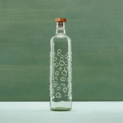 Ergonomically designed for a comfortable, snug gripFeatures textured bubble glass for a charming, stylish lookComes with a natural finish wooden stopper that provides a secure sealPerfect blend of functionality and aesthetic appealIdeal for staying hydrated in styleMATERIAL: GlassCOLOR: ClearCAPACITY: 750 ml