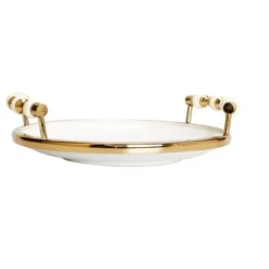 Elevate your table décor with this white and gold beaded set. Its modern simplicity makes it the perfect addition to any finely designed table. Crafted from quality materials and meticulously sculpted by professional artisans, this plate can be used to serve or as a displaying tray. Add a touch of elegance to your home with this beautiful and functional piece.