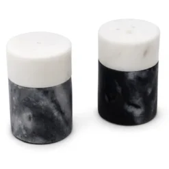 This salt and pepper set features a sleek and stylish design in white and black marble. Made from high quality materials, it adds a touch of elegance to any gatheing or seated afair. Enhance your dining experience and add a touch of sophistication to your meals with this beautiful set.