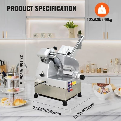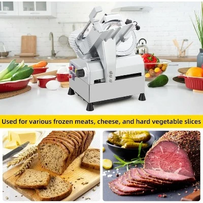 - Wide Application: Our slicers can be used to slice meats, deli meats, cheeses, roast beef, turkey breasts, breads, vegetables, fruits and other foods. (Note: Frozen meat needs to be thawed at room temperature for 15 minutes. Fresh meat should be cut after it has been frozen. (Hard cheeses, breads, vegetables, etc. can be cut, but soft foods need to be frozen before cutting). Ideal for home or commercial use in kitchens, restaurants, butchers, cafeterias, etc.