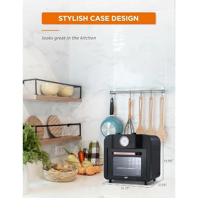 - Functions include Air Fry, Bake, Broil, Roast, Toast, Warm