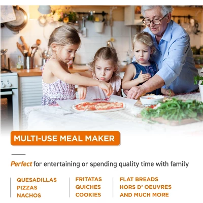- Perfect for entertaining bake quesadillas, nachos, frittatas, giant cookies, hors d’oeuvres and more