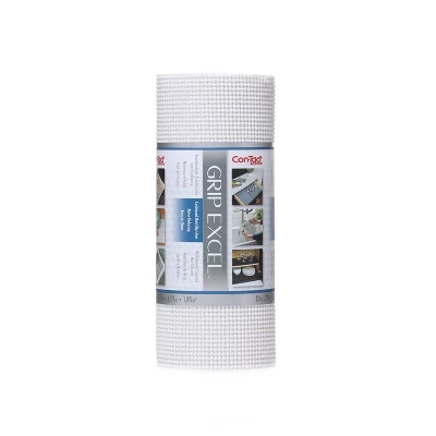 Con-Tact Brand Grip Excel provides a thick cushioned and non-slip surface to help keep things in place. It is a great organizational solution for your kitchen drawers, bathroom shelving, office cabinets, craft room organizer and more. Non-slip on both the top and bottom. Washable and durable. Cushions and protects most surfaces. Easily cuts straight by following the gaps between the beads. The 40sq foot project size roll lets you cover an even larger area than before with just one roll. BPA Free.