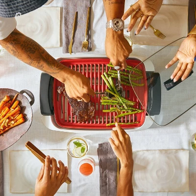 Partyโs at your place! Enjoy all the fun of a backyard BBQ without actually having to be outdoors thanks to the CRUXGGโข VERS 2-in-1 Smokeless Grill & Griddle with Lid. A smokeless and healthier cooking alternative featuring a temperature-control dial for mastering the art of grilling. And the tempered glass lid keeps food fresh and warm longer. An added perk to your purchase? CRUXGGโข helps support food insecurity programs.