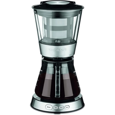 Make authentic cold brew coffee–in as little as 25 monutes! Three flavor strength options provide a customized coffee experience that is naturally smoother and sweeter!Product Highlights:7-cup glass carafe with removable stainless steel filter lid makes ready-to-drink cold brew Coffee in as little as 25-45 minutesStrength Selector for mild (25 min), medium (35 min) and bold (45 min)Removable water tank and coffee filter basket for easy filling and cleaningCoffee release lever with indicator lightGlass carafe can be used to store Coffee in refrigerator for up to 2 weeksAll removable parts are dishwasher safeProduct Features:Ready-to-Drink in MinutesExclusive technique speeds up the cold brew process for total flavor extraction in as little as 25 minutes!Must Have FeaturesStrength selector for mild, medium, and bold settings, ready tone alert, and removable parts are dishwasher safe.Easy-to-Use and CleanClear brewing chamber with removable water tank and coffee filter basket for easy filling and cleaning.7-Cup Glass CarafeFeatures an ergonomic handle, easy-to-read markings, and a removable stainless steel filter lid. Store coffee in the refrigerator for up to 2 weeks.Removable Water TankRemovable water tank and coffee filter basket for easy fill and clean.Carafe Lid FilterRemovable carafe lid filter for easy clean and great tasting coffee.Easy-to-Use Control PanelSelect mild, medium or bold settings.Flavor ExtractionThe unique spin technology circulates coffee through water for total flavor extraction in a fraction of the time manual brewers require.