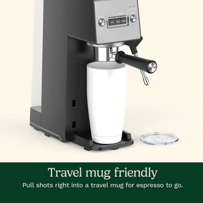 - Café beverages to go: Pull espresso shots right into a travel mug (up to 20 oz) and cup-warming plate on top of the machine