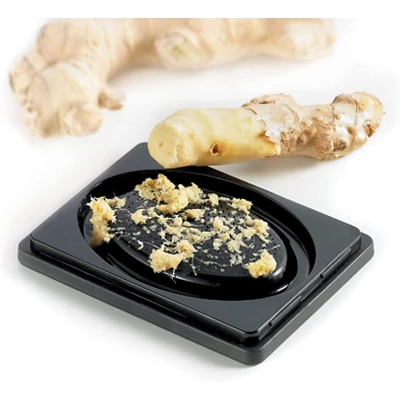 This award winning grater combines razor-sharp etched blades with a grooved pattern to allow cooks to grate larger quantities of food with less effort. The non-slip handle and base provide good stability so the grater can easily handle grating large quantities of food. The grater has five grating surfaces: fine, coarse, ultra-coarse, shaver, and ginger. The fine grating surface zests lemons and limes in seconds, grates’ parmesan and other hard cheeses light and fluffy, finely grates’ nuts, nutmeg, and cinnamon for baking and decorating, and purées garlic instantly. The coarse grating surface grates chocolate and shreds coconut for baking and decorating, grates vegetables, raw horseradish, hard-boiled eggs, and chilled butter for pastry. The ultra-coarse grating surface is excellent for soft cheeses such as mozzarella and cheddar. The shaver produces shavings of chocolate, parmesan and other hard cheeses, and garlic or ginger. And the ginger grating surface perfectly shred fresh ginger root while leaving unwanted fibres behind. Unlike conventional graters in which the cutting edges are formed by punching holes through stainless steel or tin, this grater’s tiny razor-like edges are created with a photo-etching process in which holes are dissolved with a chemical, leaving edges that finely shave or slice the food instead of tearing or shredding.