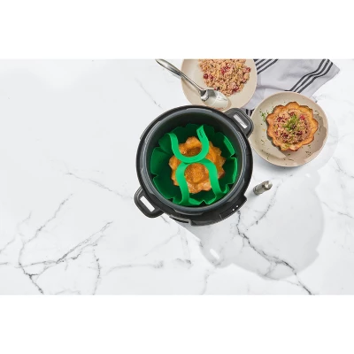 So many recipes, so little time. The Cuisipro Cooking Steamer is a must have kitchen essential for the home chef. Add unlimited flavors and spices to vegetables, meat, fish or shellfish and cook with ease. Made from food grade silicone, this versatile steamer can be used in a pressure cooker, slow cooker or in a stove top pot. The flexible heat-resistant handles allow you to safely remove the steamer from boiling water while the high walls keep your food contained during transport. It features an easy to roll and compact design for storage and is dishwasher safe.