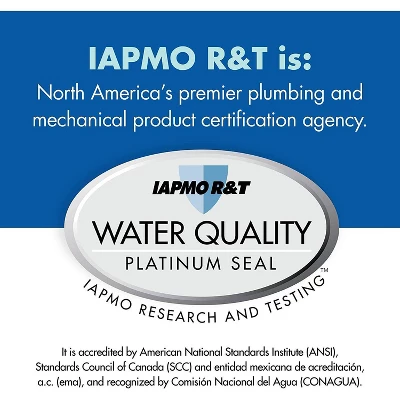 - Filters 50 plus Impurities*: Reduces lead, asbestos, chlorine taste and odor, 8 pharmaceuticals, and cysts. Certified by IAPMO R&T against NSF/ANSI standard 42, 53, and 401 for the reduction of claims specified. *Substances reduced by this filter are not necessarily in all users’ water
