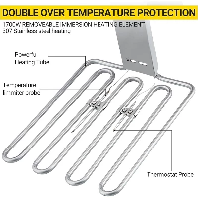 - Quick Heating: This commercial double fryer is equipped with a powerful 1700W heating element in each basin that guaranteed to fry or warm food quickly and maintain oil temperature; This high wattage countertop fryer provides greater heating efficiency for faster cooking and a higher output in a compact countertop footprint