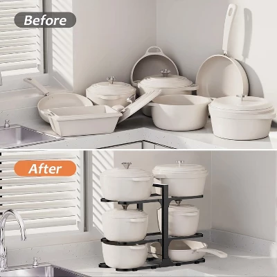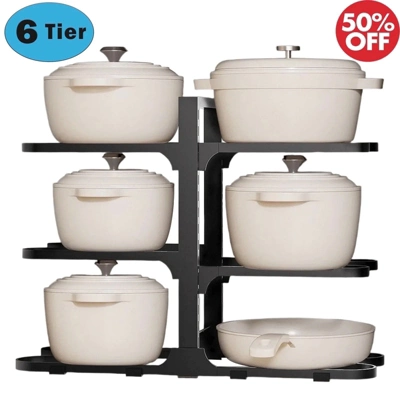 - Space Optimization: This 6-layer pots and pans storage rack provides ample storage space for pots and pans, pot lids, and kitchen utensils. You can store them by size or type for easy access when cooking.