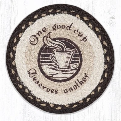 Start your day with a smile and a cup of warmth with the Earth Rugs One Good Cup Printed Round Trivet. Featuring a bold coffee-themed message—“One Good Cup Deserves Another”—this 10″ x 10″ braided jute trivet is both functional and fun. Handcrafted from 100% natural jute, it brings rustic flair and daily motivation to coffee stations, breakfast nooks, and cozy kitchens. Its natural tones and vintage typography create a farmhouse-chic aesthetic, while the durable build protects surfaces from heat. Whether for coffee lovers or rustic home enthusiasts, this piece adds charm and purpose in equal measure.Key Features: