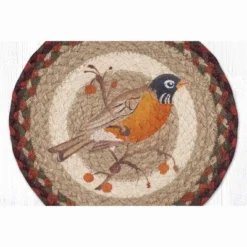 Celebrate the beauty of spring with the Earth Rugs Robin Round Trivet, featuring a striking red-breasted robin perched gracefully in a natural setting. This artistic piece is printed on a hand-braided 10″ × 10″ natural jute base, offering both protection and seasonal charm. With a 0.17″ thickness, it serves as a reliable hot pad while enhancing your rustic or cottage-style kitchen with a delicate touch of nature.Key Benefits