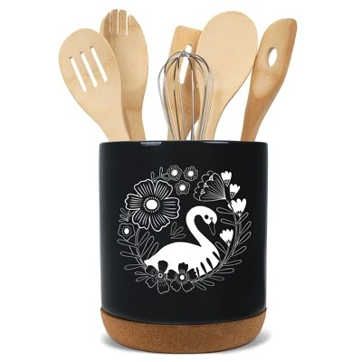 - ELEGANT SWAN & FLORAL DESIGN: Add a touch of farmhouse charm to your kitchen with this beautiful ceramic utensil holder featuring a graceful swan and delicate floral motif