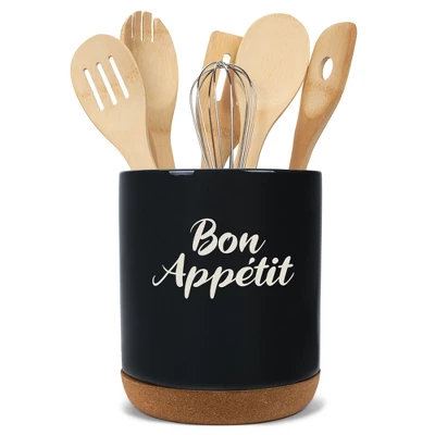 - Durable & Stylish Design: Made of high-quality laser engraved ceramic with cork bottom, this kitchen utensil holder is both sturdy and stylish, complementing any kitchen d�cor
