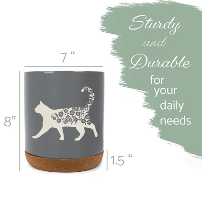 Elanze Designs Floral Cat Flowers Arrangement Kitten Ceramic Cork Bottom Gray Large Capacity Utensil Holder Crock For Countertop Storage, Stylish &