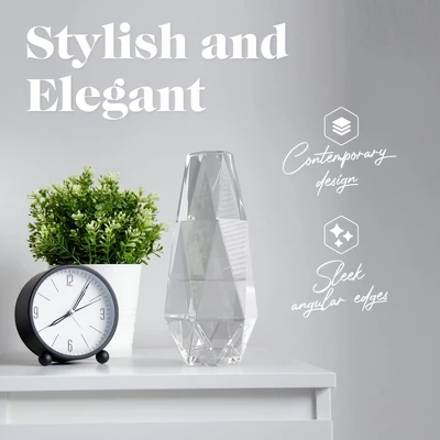 The Fifth Avenue Crystal Modern Geometric Bedside 2-Piece Night Carafe is an elegant set that makes a bold fashion statement to your bedside table. Expertly crafted with lead-free glass, this set includes a clear carafe bottle and a silver tumbler that also serves as a lid to keep water clean for drinking. With a modern geometric shape, the carafe and matching glass will create increased visual interest and a sophisticated look displayed anywhere in your home. 37 oz capacity for water, herbal iced tea or juice. Coordinates beautifully with any existing decor. Great gift for weddings, housewarmings and other special occasions.