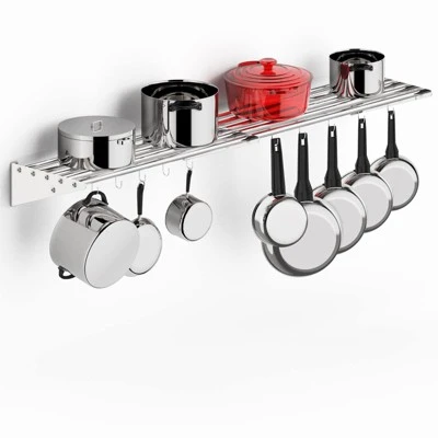- Spacious Storage: Measuring 12″ x 60″, the shelf provides ample space for organizing pots, pans, and cookware efficiently, keeping your kitchen tidy and accessible.