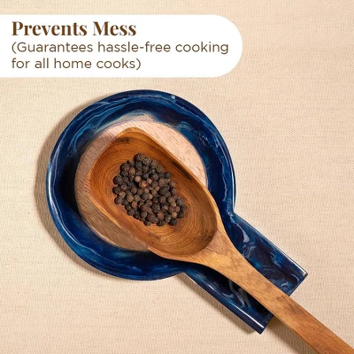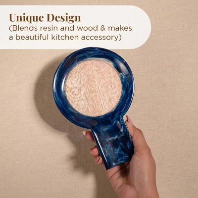 - UNIQUE RESIN & WOOD DESIGN: Elevate your new home essentials with this stunning spoon rest made of resin and wood. Its swirling blue resin and warm wood creates a captivating focal point, making it more than just functional; it’s a unique addition to your kitchen accessories.