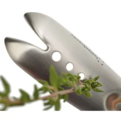 The Fusionbrands HerbZipper; is a rapid herb leaf removal tool that every fresh herb lover and gardener will adore. The HerbZipper; makes working with fresh herbs like thyme and rosemary a breeze, simply place the stem end into the appropriate size hole and pull through to remove the leaves from the stem. There is also a v-groove at the end for larger stems.HerbZipper speeds up the leaf removal process so you can gain an extra zip in your cooking step!
