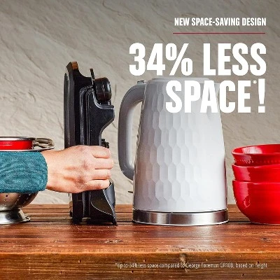 - New Space-Saving Design* – With a low profile and vertical storage capabilities, it�s simple to fit the grill in small spaces on your countertop or in the cupboard.