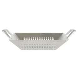 Grill an assortment of small ingredients with the Gibson Amber 12 Inch Square Cast Aluminum BBQ Grill Topper. Features four raised sides to keep food from fall, and built-in handles to easily move from grill to table. The cast aluminum body is perfect to withstand open flame grills while boasting an appealing silver design. Grill green onions, mixed veggies, corn, or other small sides.