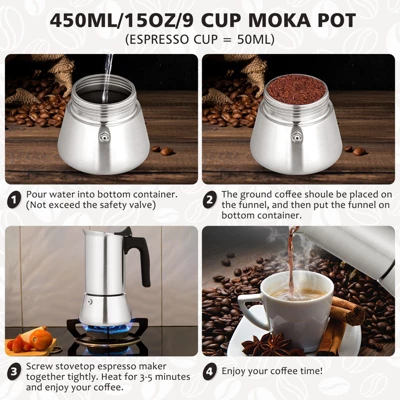 Elevate your coffee game with our stylish stainless steel mocha pot! Its sleek brushed finish adds elegance to your kitchen, while even heat distribution ensures a perfect brew every time. Easy to use and built to last, this pot is perfect for sharing cozy moments with friends and family. Let us brew some magic!