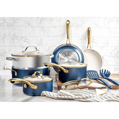 - GOTHAM STEEL NATURAL COLLECTION: Healthier cooking is easy with this nonstick ceramic cookware set. Pots and pans are designed to be 2x more durable, dishwasher safe, and oven safe up to 500ûF. Gold stay-cool handles allow you to go from stovetop to oven. But this set doesnÕt just cook good, they look good too, with a modern cream color that adds an elevated aesthetic to your kitchen.