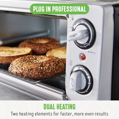 The GreenLife Air Fry Toaster Oven maximizes space to deliver incredible results. The compact design features dual heating elements that ensure your food cooks evenly. The adjustable time and temperature control makes it simple to find your desired setting. Plus, the healthy ceramic nonstick baking pan is PFAS-free so you can make every meal without worrying about toxins. The spacious design allows for 4 slices of bread, a 9” pizza, a batch of cookies, and so much more.