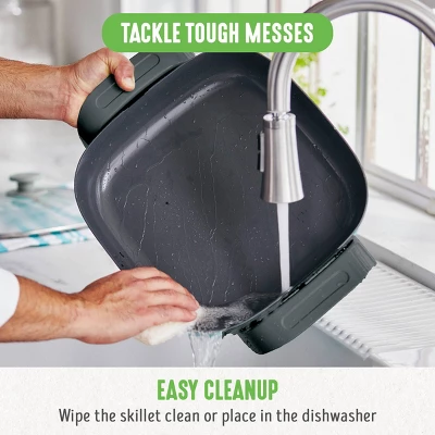 If you’re looking for an entire kitchen you can plug in, look no further. With the Healthy Power 5-in-1 Electric Skillet you can fry, sauté, bake, grill, steam, and more. Our healthy ceramic nonstick coating is specially designed for kitchen electrics to give you optimal nonstick performance. Plus, our coating is made without PFAS, PFOA, lead, and cadmium so you can cook every meal healthier. The 5QT capacity and 12” x12” surface area gives you ample room to for large portions the whole family can enjoy – from large batches of pancakes and eggs in the morning to delicious lasagnas and chicken cutlets at night. The one-knob control lets you dial in your desired temperature for perfect results, while the stay-cool handles and non-slip bottom keep you comfortable and in control. Plus, the tempered glass lid seals in heat, moisture, and flavor while you watch your meal’s progress. Simply wipe the skillet clean when you’re though or place it in the dishwasher for tough messes.
