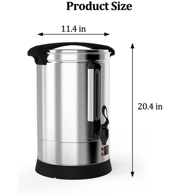 This commercial coffee maker delivers fast, large-capacity brewing of up to 120 cups in just 60 minutes, ideal for busy catering events, offices, and venues. Featuring smart thermostatic control, it maintains the perfect coffee temperature automatically, ensuring every cup is fresh and hot. Designed for easy cleaning with removable parts and a drip-proof faucet, it combines convenience with hygiene. Built with double-wall vacuum insulation and durable 304 stainless steel, it offers excellent heat retention and long-lasting durability. Trusted by churches, schools, and restaurants, this coffee maker guarantees professional-grade coffee for large-scale needs.