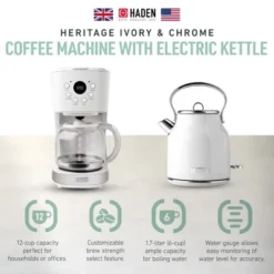 - UPGRADE YOUR MORNING: Elevate your kitchen with this Haden coffee maker and Heritage kettle where classic style meets contemporary living