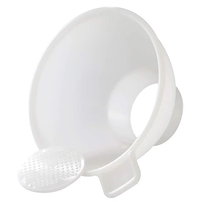 - Wide-mouth funnel can easily transfer liquids and solids between containers