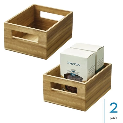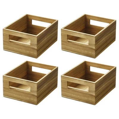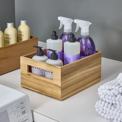 Our iDesign Acacia Wood Pantry Bins marry function and beauty, creating instant order throughout the kitchen. Made from natural acacia wood, these bins neatly stow away everything from packaged foods in the pantry to fresh produce on countertops, bringing a clean, fresh look to kitchen organizing. This open bin creates a sophisticated catchall while keeping everything visible and organized. Use in multiples or alone to create order where you need it most. Finished with integrated handles, these durable yet lightweight bins allow you to grab and go as needed. With iDesign, you can live simply every day.