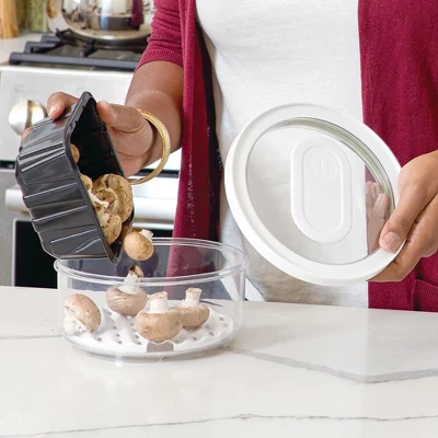 Restore fridge order and avoid losing perishables to the back of the fridge with the iDesign Fresh Produce Bins. Complete with a removable drainage tray, this insert helps keep moisture away and promotes proper air circulation for fruits and vegetables while preventing produce from bruising. Featuring an airtight lid with an integrated vent and removable cover, this produce bin allows you to control the ripening process and keep foods fresher for longer. Its crystal-clear construction makes room for healthy eating habits by keeping everything from fresh produce to healthy snacks easily visible. Its stackable design optimizes every inch of space by allowing you to store foods strategically for a frustration-free fridge space. With iDesign, you can live simply every day.